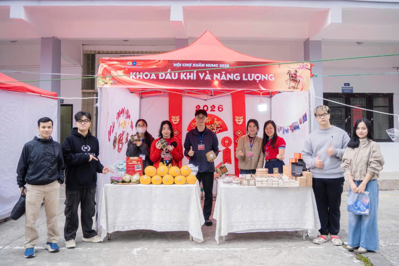 (HUMG - 30/01/2026) – Trong không khí rộn ràng đón chào Xuân Bính Ngọ, ngày 30/01/2026, thầy và trò Khoa Dầu khí và Năng lượng đã hòa mình vào không gian văn hóa rực rỡ của Hội chợ Xuân HUMG 2026 – nơi gắn kết tình đồng nghiệp và sẻ chia yêu thương.